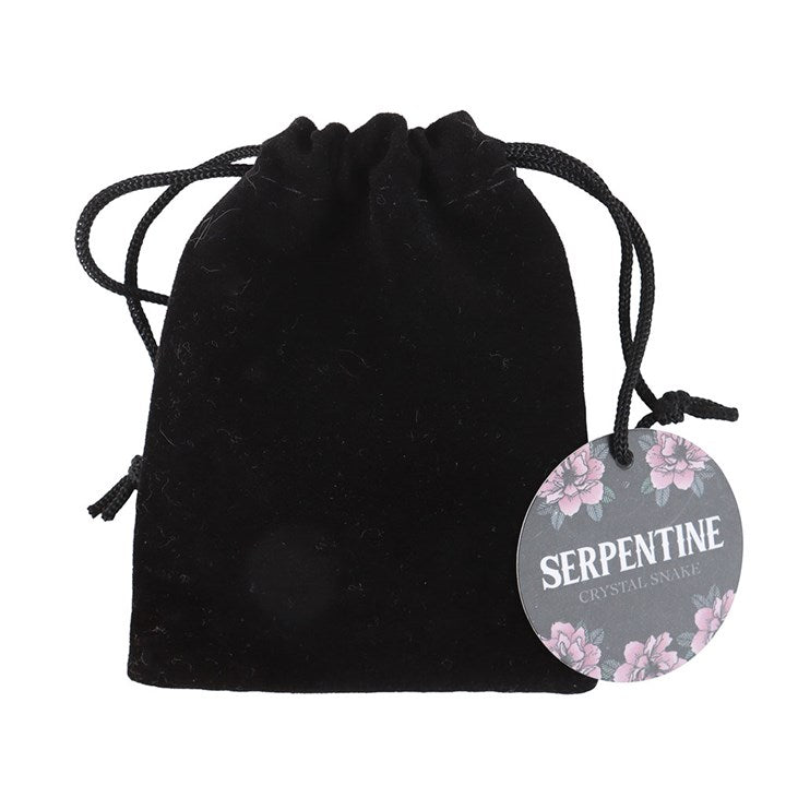 Poised, ready to strike, this stunning black obsidian crystal snake offers an aura of protection, healing and purification. Presented in a black velvet drawstring pouch, this crystal can be used as a tool for wellbeing when in need of support or reassurance.