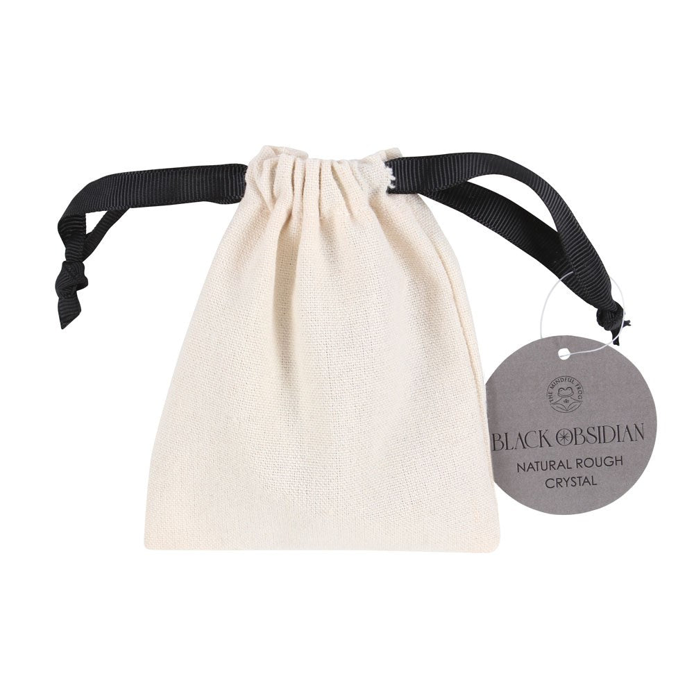 Black obsidian (a type of volcanic glass) stones are said to promote truth and are commonly used as an aid in crystal healing and scrying. Harness its rumoured healing properties to strengthen spiritual connections. Comes in a cotton drawstring pouch with matching information card. Size, shape and colour of stone will vary due to its unique nature.