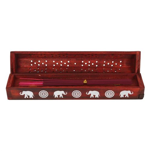 This incense gift set includes 10 rosewood fragranced incense sticks in a mango wood box. Printed with white elephant silhouettes and mandala designs, this box doubles as both an incense holder and storage.