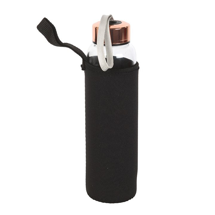 Take advantage of the claimed health benefits of clear quartz with this infused glass water bottle featuring a stunning Luna Moth design. Inside the bottle you'll find a natural clear quartz crystal point on a screw-off stainless steel base for easy cleaning, rubberised anti-slip bottom, stainless steel screw lid with loop strap and a neoprene cover to insulate and protect.