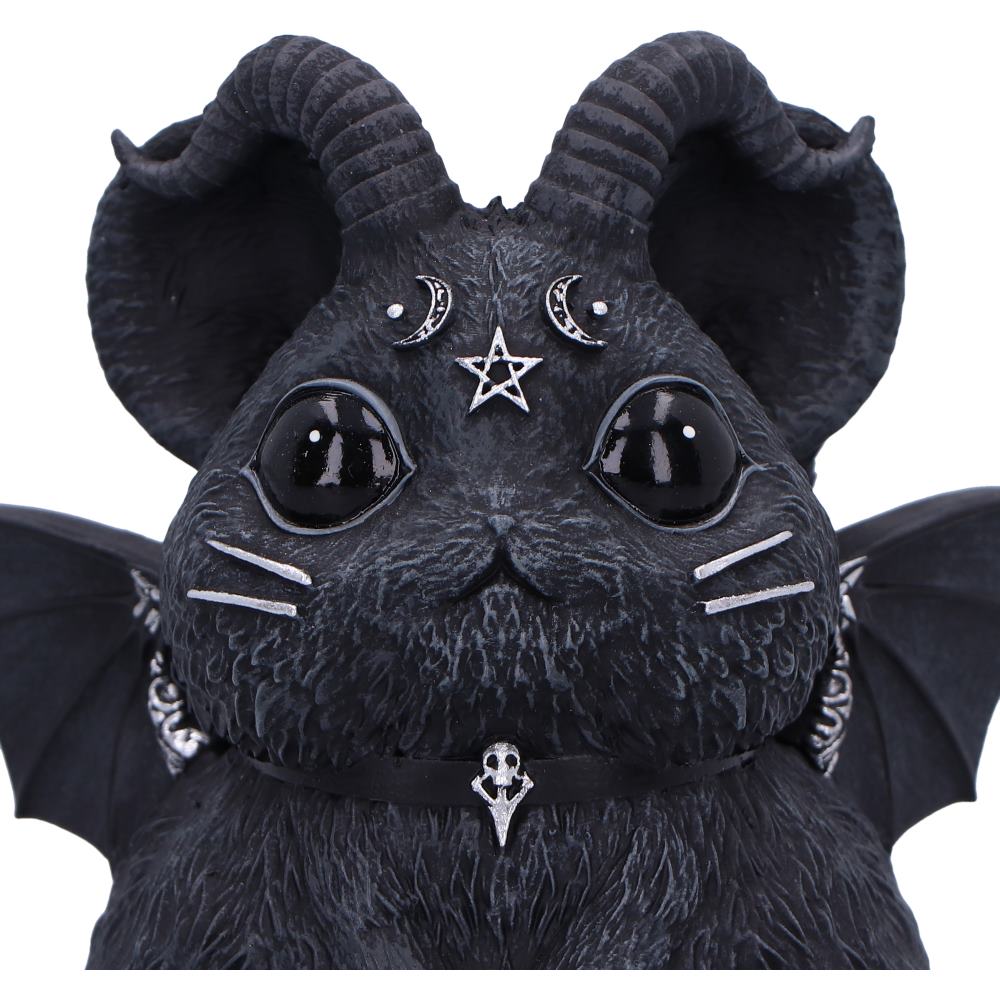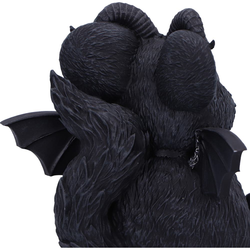 Introducing the enchanting Cult Cuties Marchillias, a delightful figurine inspired by the charming chinchilla, now with a whimsical twist. This adorable creature features menacing horns, bat wings, and a collar adorned with a silver skull, blending cuteness with a hint of gothic allure. Perfectly packaged in a Nemesis Now Cult Cuties branded gift box, Marchillias sits securely within a protective foam insert, topped with luxurious red felt. The box's see-through window ensures this unique piece is displayed beautifully. Ideal for collectors and lovers of gothic and witchy decor, Marchillias also makes a perfect gift. Let the charm of Marchillias grace your collection and decor today!