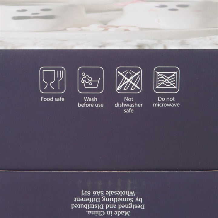 Introducing the Mr and Mrs Boo ghost-shaped mugs, the perfect pair for him and her this Halloween and autumn season. One mug features a dainty pink bow, while the other sports a sleek black bow tie, adding a touch of elegance and fun to the design. Each mug holds 440ml. Handwash only. Celebrate the spooky season in style with this adorable duo.