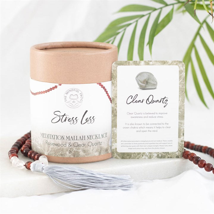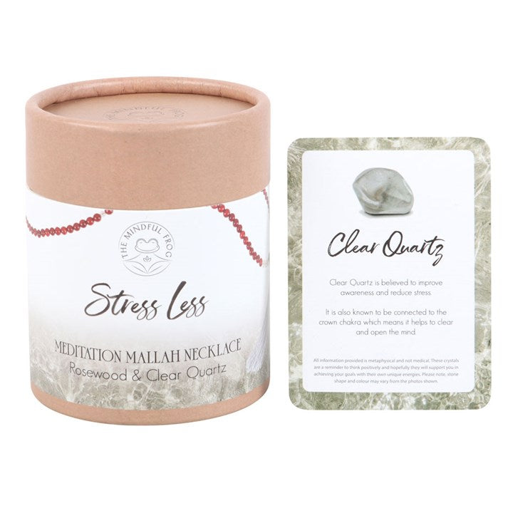 Stress Less Rosewood & Clear Quartz Mallah Necklace