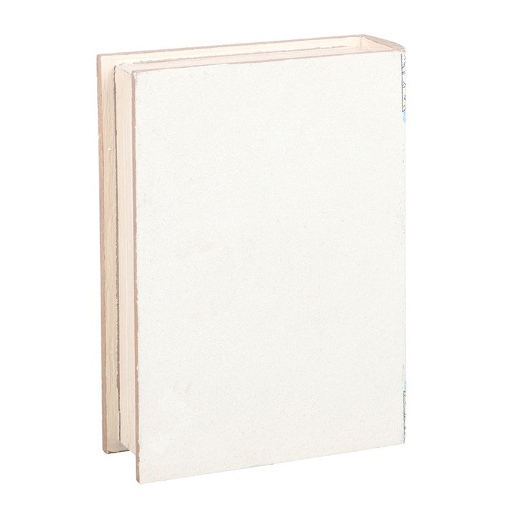 Keep your treasures tucked away with this fabric-wrapped storage box disguised as The Book of Tarot. Featuring a vintage tarot-inspired design with classic celestial Sun, Moon, Star and Wheel of Fortune motifs, this book-shaped box is perfect for storing jewellery, trinkets, or keepsakes while blending seamlessly with any magical bookshelf or altar.
